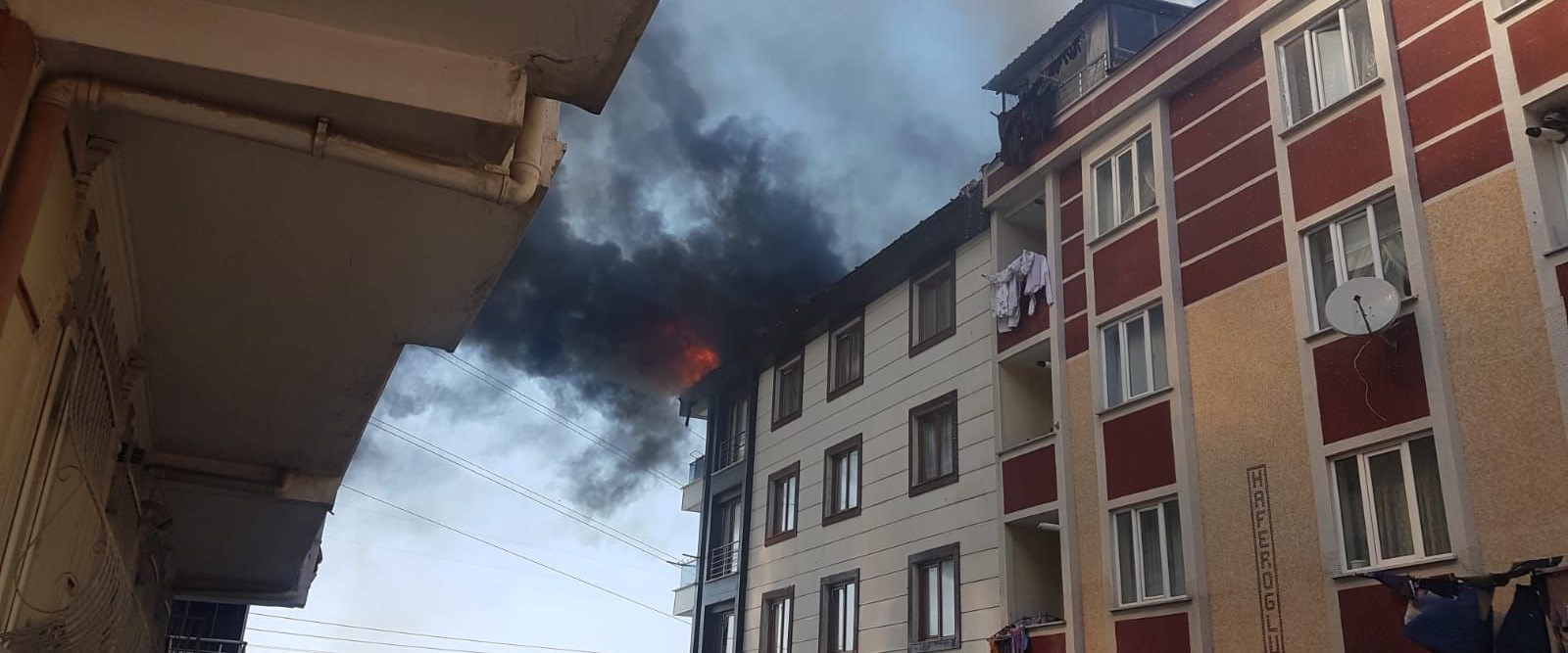 İki bina arasındaki depo alev alev yanarken binadaki vatandaşların kovalarla su dökerek yangına müdahale ettiği anlar cep telefonukameraya yansıdı.